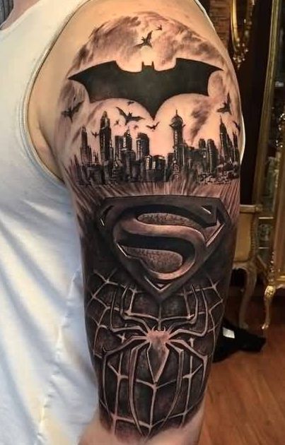 batman superman spiderman tatuaże