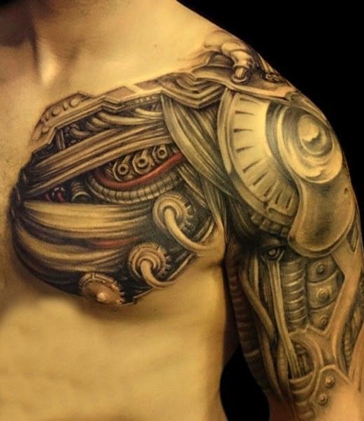 biomechaniczne ramie tatuaż mężczyzny