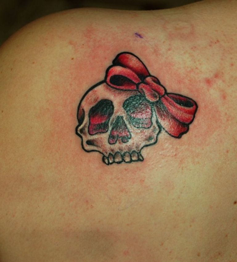 boała czaszka z czerwoną kokardą