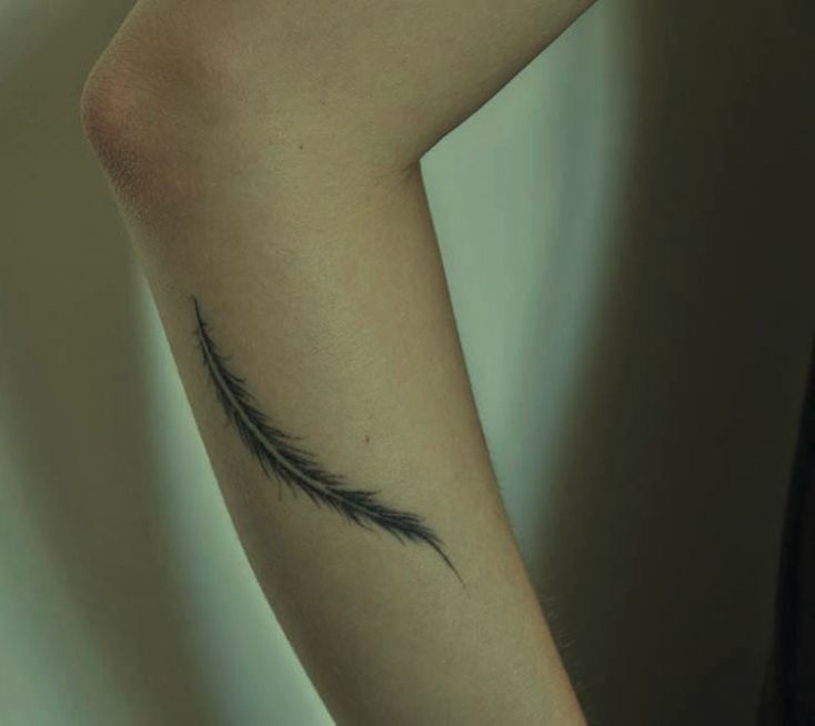 cienkie pióro tatuaż na ręce