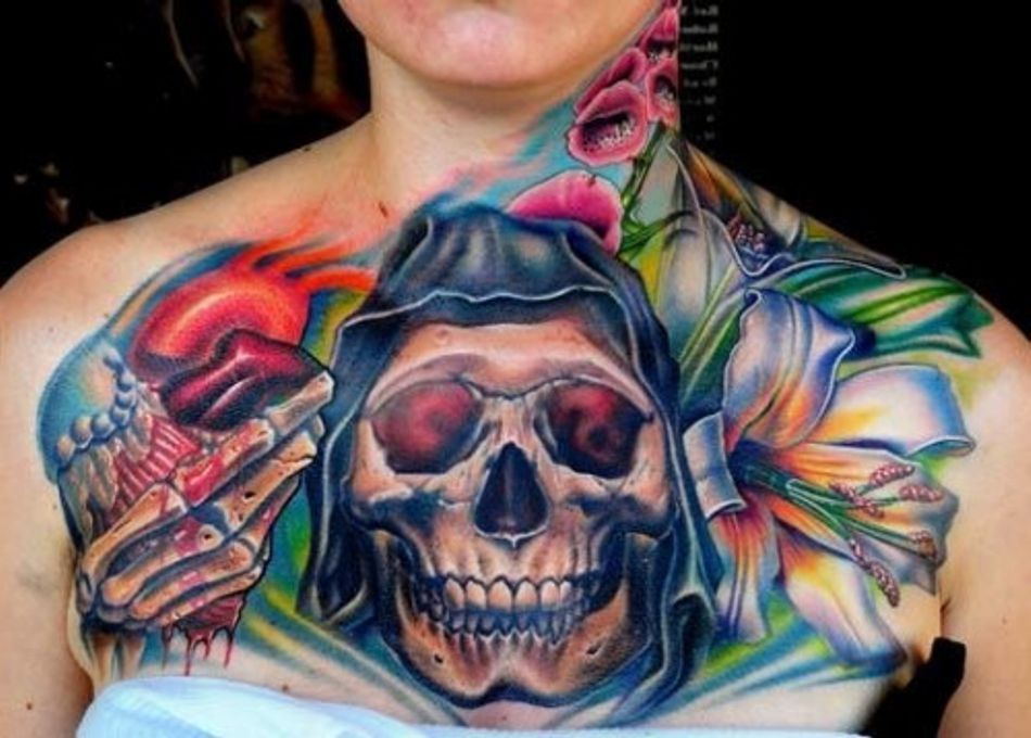 czaszka pilotka kwiatki tatuaże