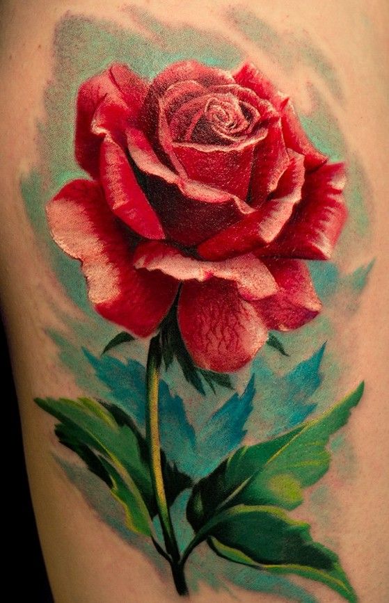 czerwona róża realistyczny tatuaż