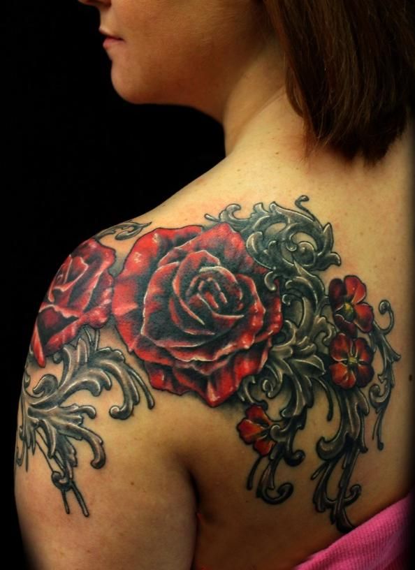 czerwone róże na ramieniu