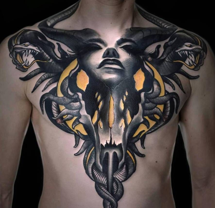 duża twarz kobiety tatuaż na klatce piersiowej