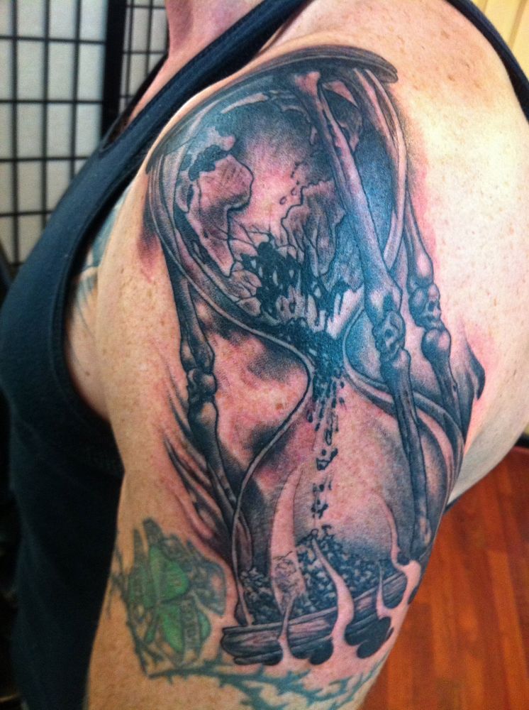 klepsydra tatuaż na ramieniu