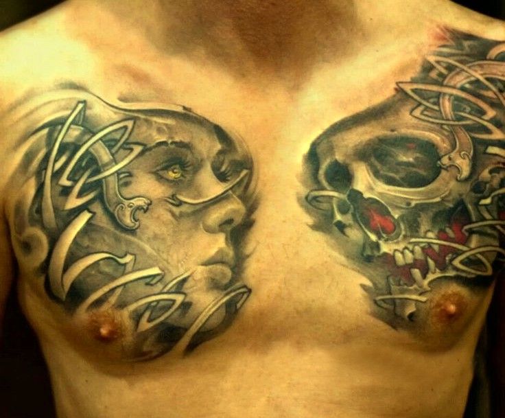 kobieta i czaszka tatuaże na klatce piersiowej