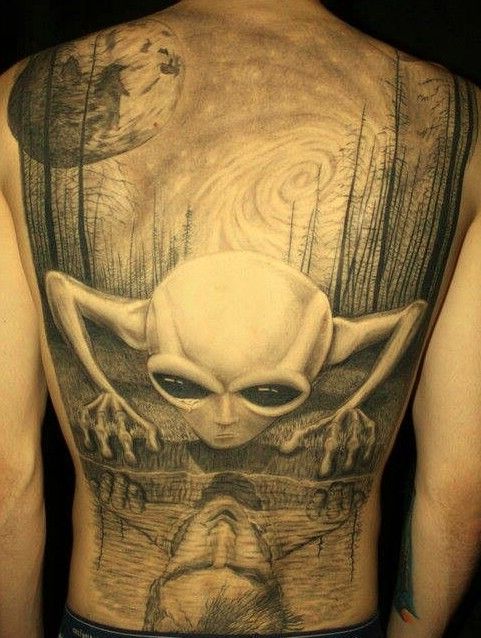 kosmita tatuaż na plecach