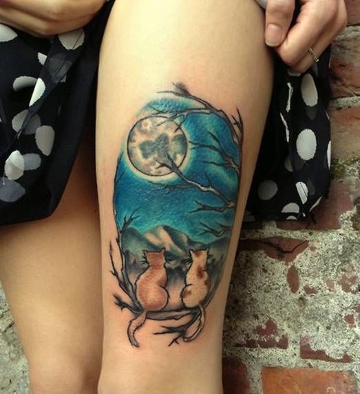 koty siedzące na gałęzi przy zachodzie słońca