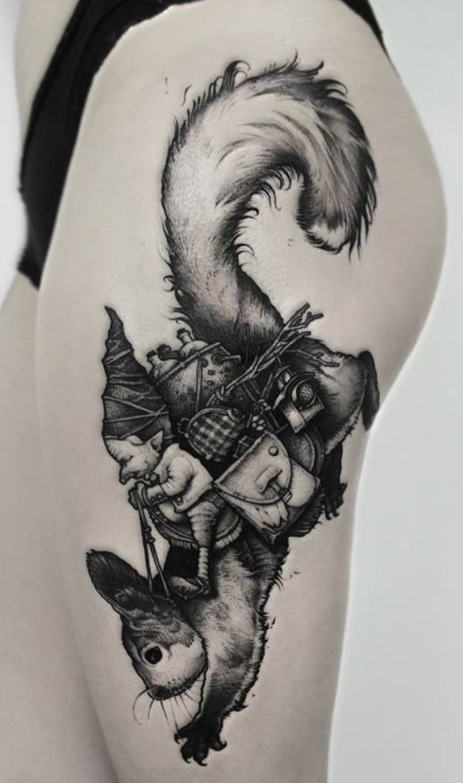 krasnal jedzie na wiewiórce