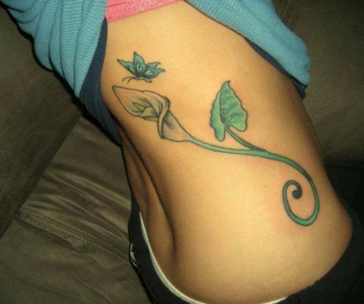 kwiatek tatuaż na żebrach kobiety