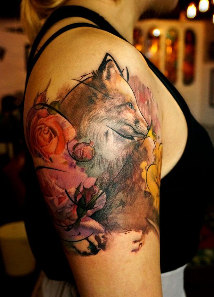 lis artystyczny tatuaż na ramieniu