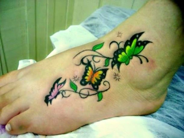 motyle tatuaże na stopie