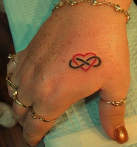 nieskończoność serce tatuaż na dłoni