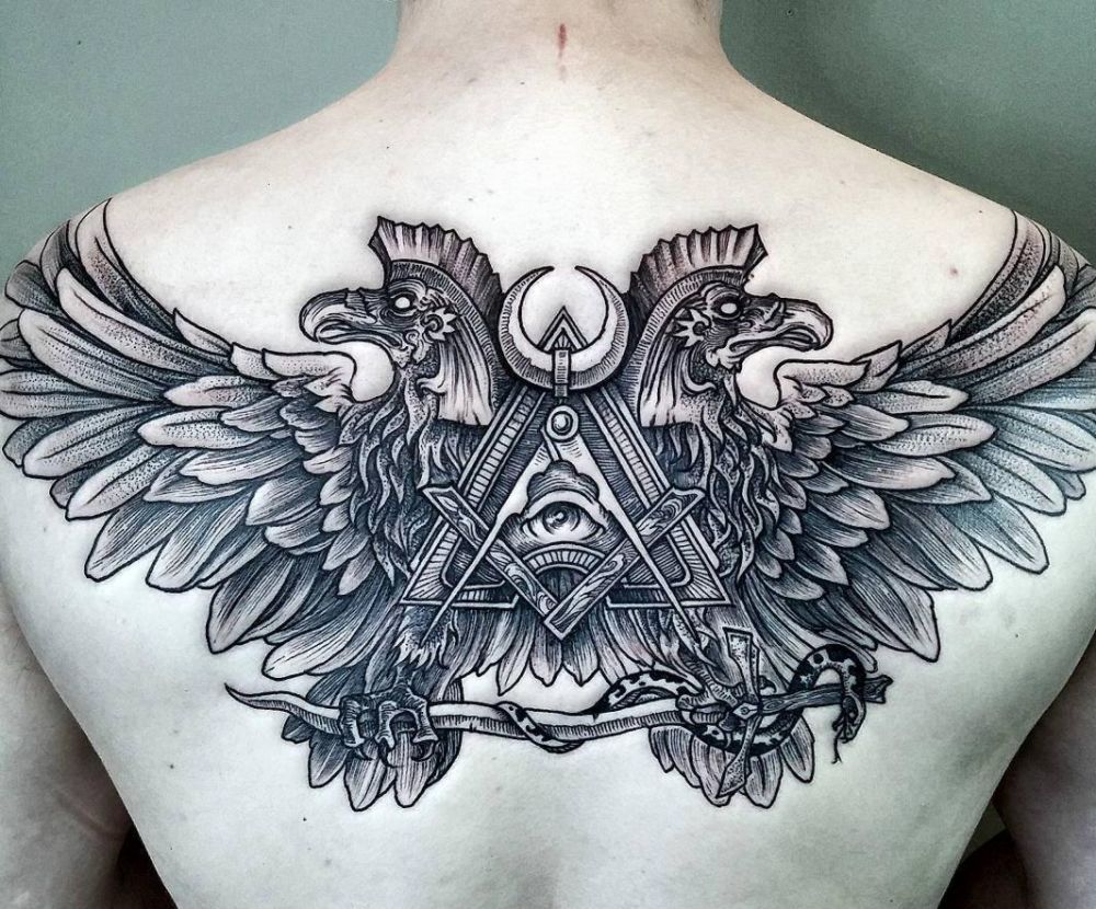 orły tatuaże na plecach