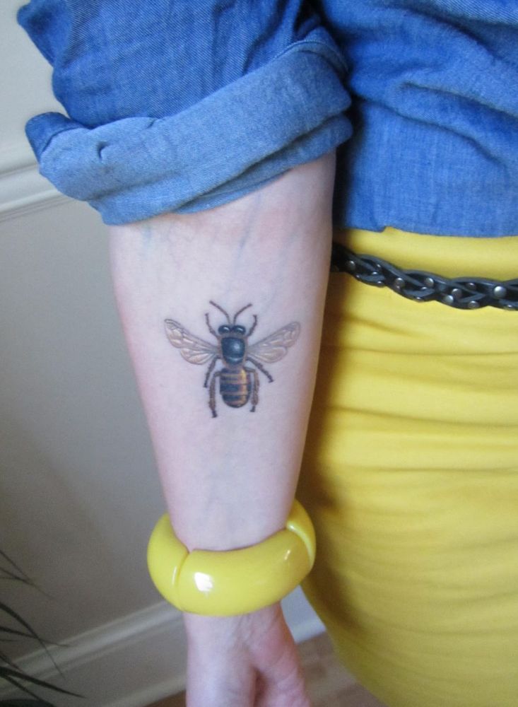 pszczoła na przedramieniu