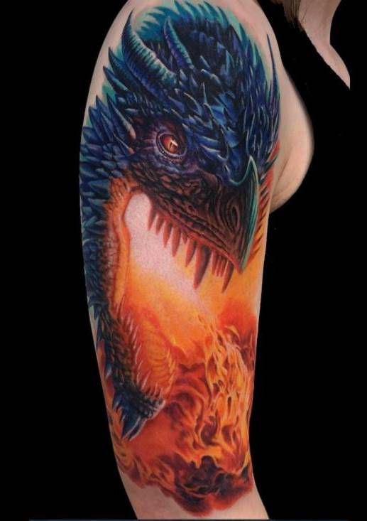 realistyczy ziejący ogniem smok