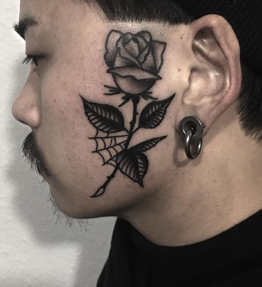 róża | tatuaż na policzku