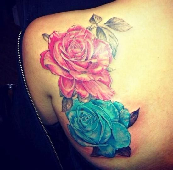 róże tatuaże na łopatce