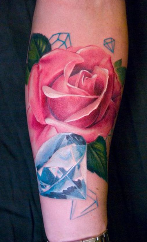 różowa róża i oszlifowany diament