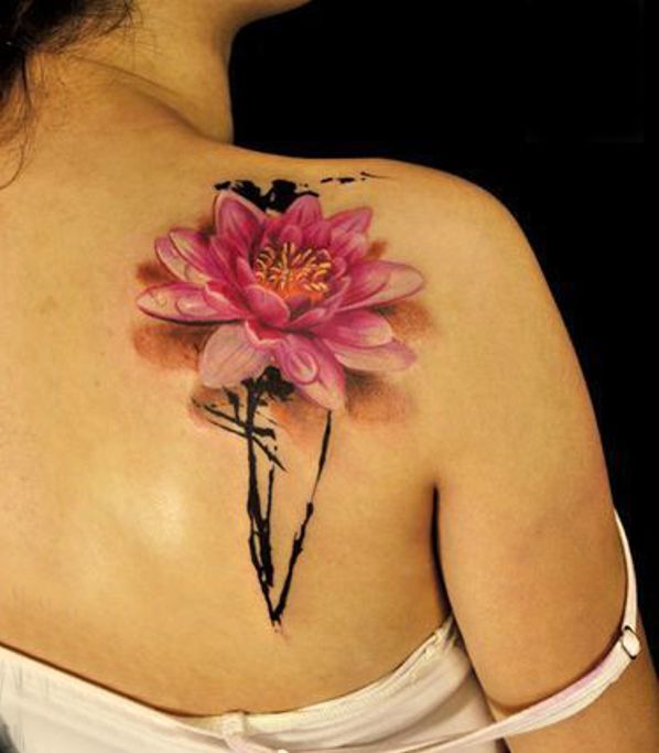 różowy kwiatek tatuaż na łopatce dla kobiet
