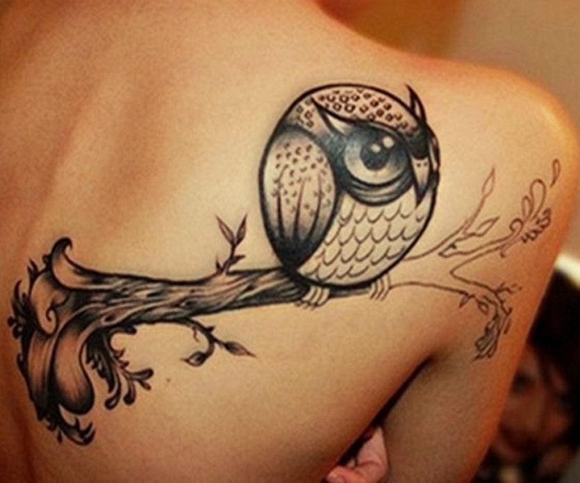 sowa na gałęzi sobie siedzi