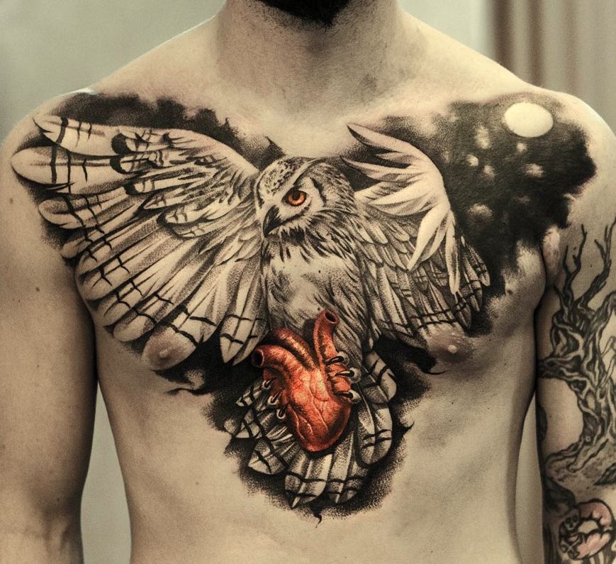 sowa z sercem w szponach