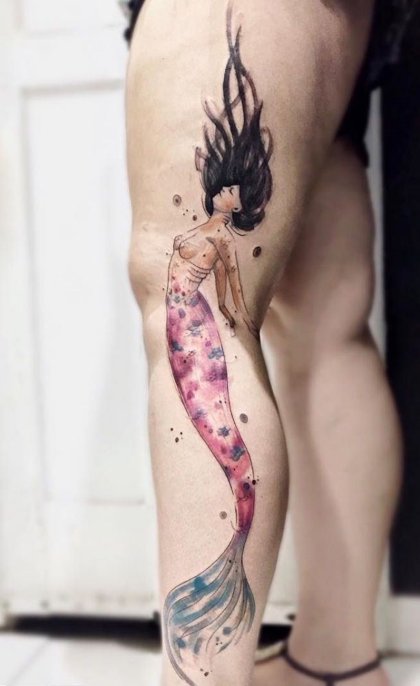 syrena kobieta tatuaż na nodze