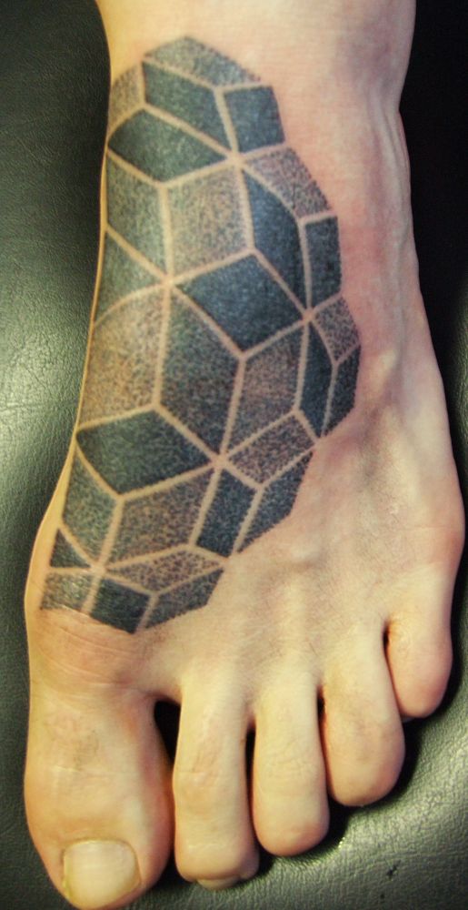tatuaż geometryczny na stopie