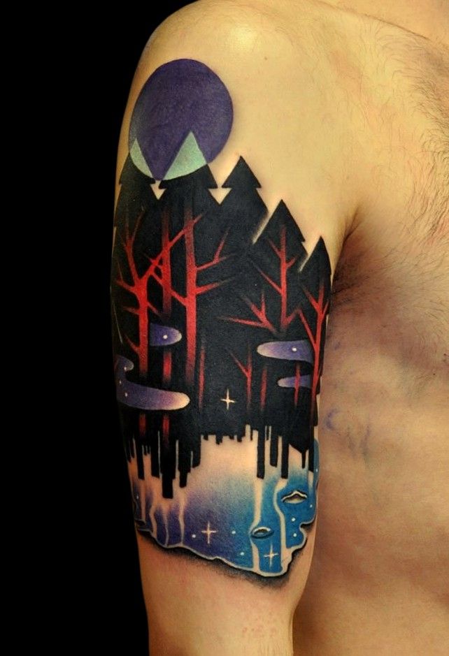 tatuaż las nocą