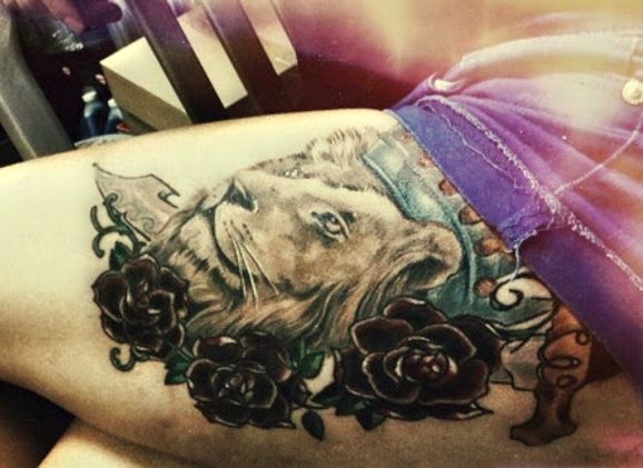 tatuaże lwy na udzie