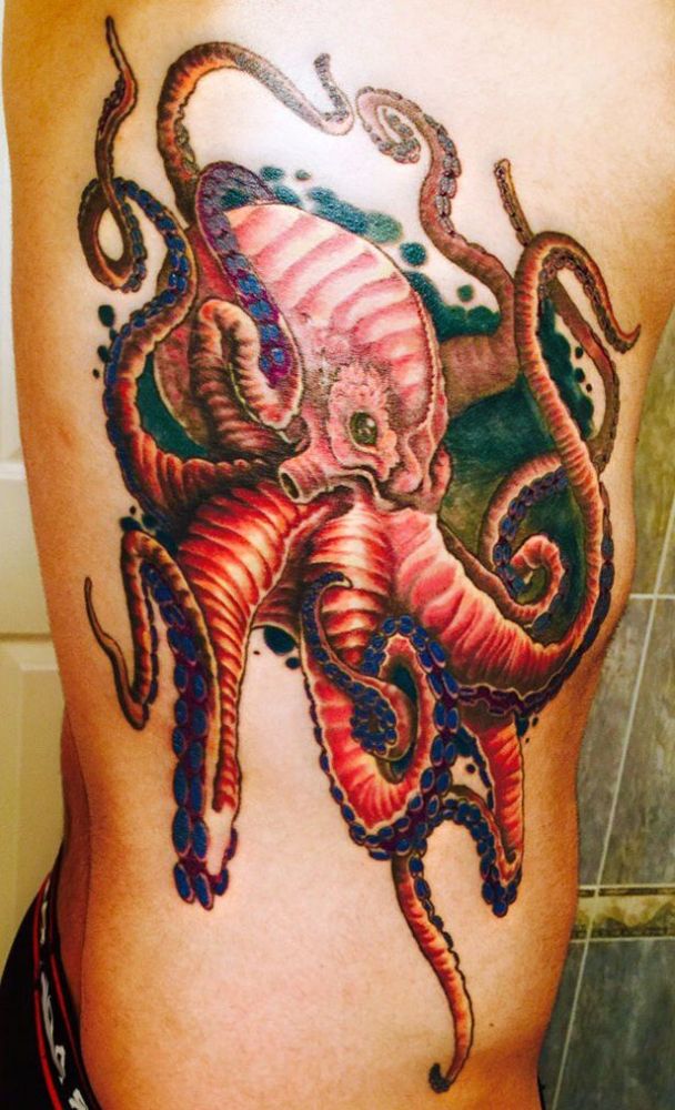 tatuaże na żebrach - ośmiornica
