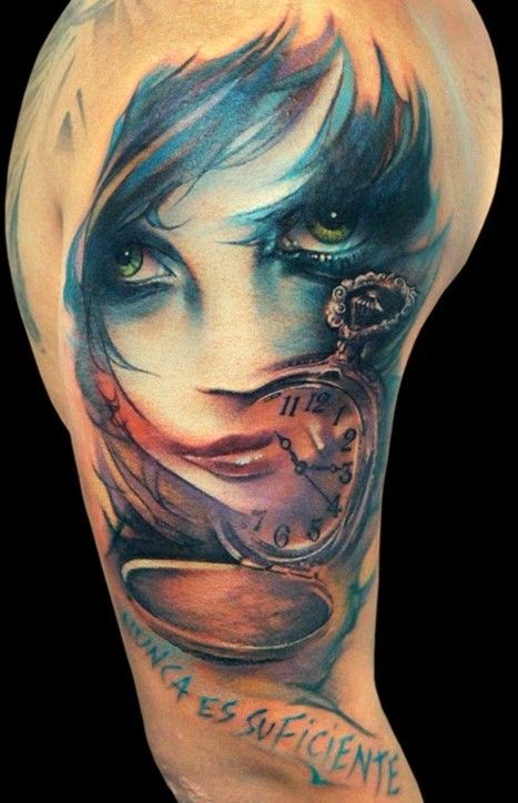 twarz i kieszonkowy zegarek tatuaż