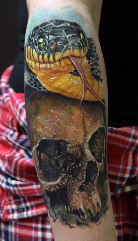 wąż na czaszce tatuaże